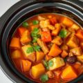 - Simmer and stir: Pour in the vegetable broth (or water) slowly, stirring as you go. Continue to cook over medium heat, stirring often, until the stew thickens to a creamy consistency. This should take about 10-15 minutes. If it gets too thick, add a bit more broth or water to reach your desired consistency.