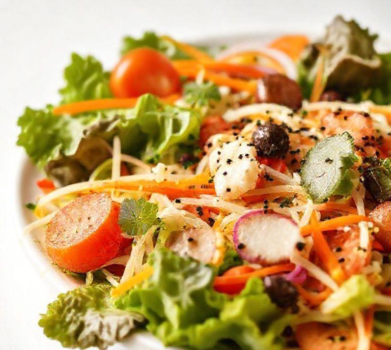 A healthy vegetarian salad typically includes a variety of fresh, nutrient-dense vegetables, such as leafy greens (spinach, kale, arugula), colorful vegetables (tomatoes, bell peppers, cucumbers), and a mix of fruits (avocado, berries, apples). Additionally, nuts, seeds, and legumes (chickpeas, lentils) are excellent sources of protein and fiber. Healthy fats, like olive oil or avocado, are also important for a balanced, nutritious salad. You can also include whole grains like quinoa or farro for extra texture and nutrition.