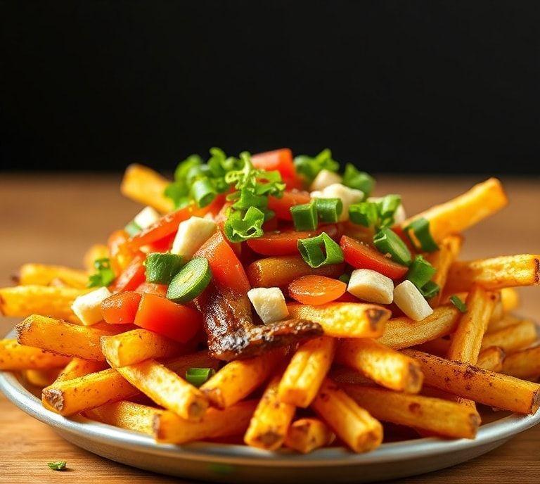 - BBQ Style: Top your fries with a smoky barbecue sauce, grilled corn, and green onions. You could even add a few crispy fried onions for that extra crunch.