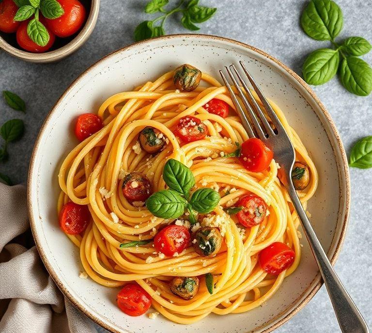 - Garnish and enjoy: Top with fresh basil and a final dusting of cheese. Serve hot and enjoy the simple beauty of this vegetarian pasta dish.