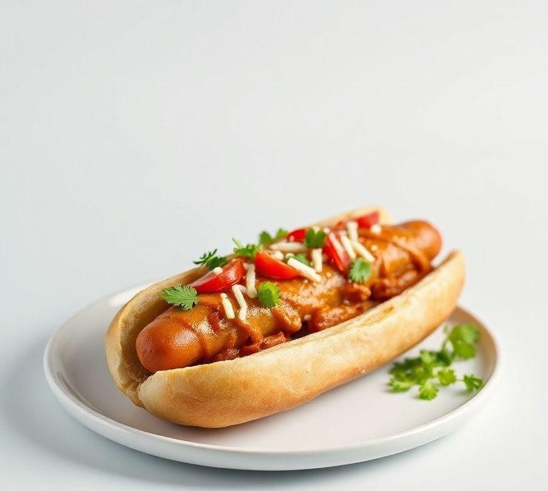 The recipe uses plant-based sausages as the base, which gives you the same hot dog experience you love, but with a healthier, sustainable spin. Then, we load it up with a flavorful chutney, a sprinkle of crispy onions, and a couple of other unique toppings that give it that unmistakable Indian flair.